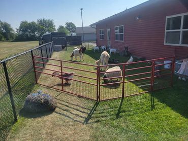 This setup is best suited for large events like company picnics, larger festivals, fairs or when you just want it all for your event. This package can be setup to fit two different sizes 24ft x 24ft or 16ft x 32ft. Our deluxe farm package is one large pen that is divided into separate areas so you can go into the pen with all of our smaller animals but you also get to have all of our larger animals to pet and feed as well.